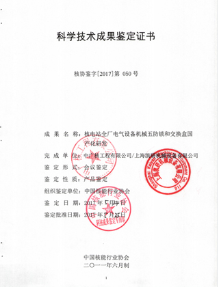 Appraisal certificate of scientific and technological achievements (remote transmission)